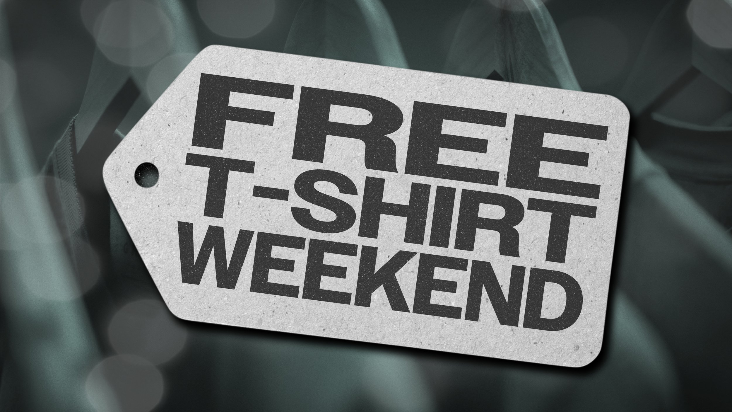 It’s free t-shirt weekend! Be one of the first 300 people (split between the 2 services) and get our new t-shirt! It’s our most popular design with a new color. Don’t miss out!