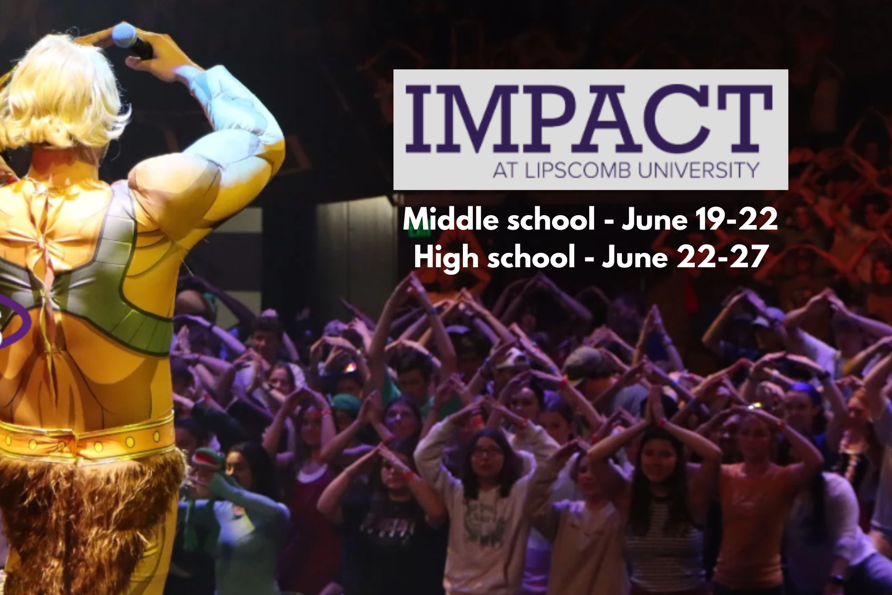 Just a few more days to register for Impact! Impact Jr (grades 6-8) will be June 19-22 and Impact Sr (grades 9-12) will be June 22-27. We’re heading to Impact in Nashville this summer, and you do not want to miss it! Impact takes place at Lipscomb University and packs several days of concerts, skits, talent shows, games, breakout sessions, and powerful devotionals. It’s an unforgettable experience that has shaped so many lives — and this year will be no different. This trip has the potential to be truly life‑changing, so make plans now to be there.